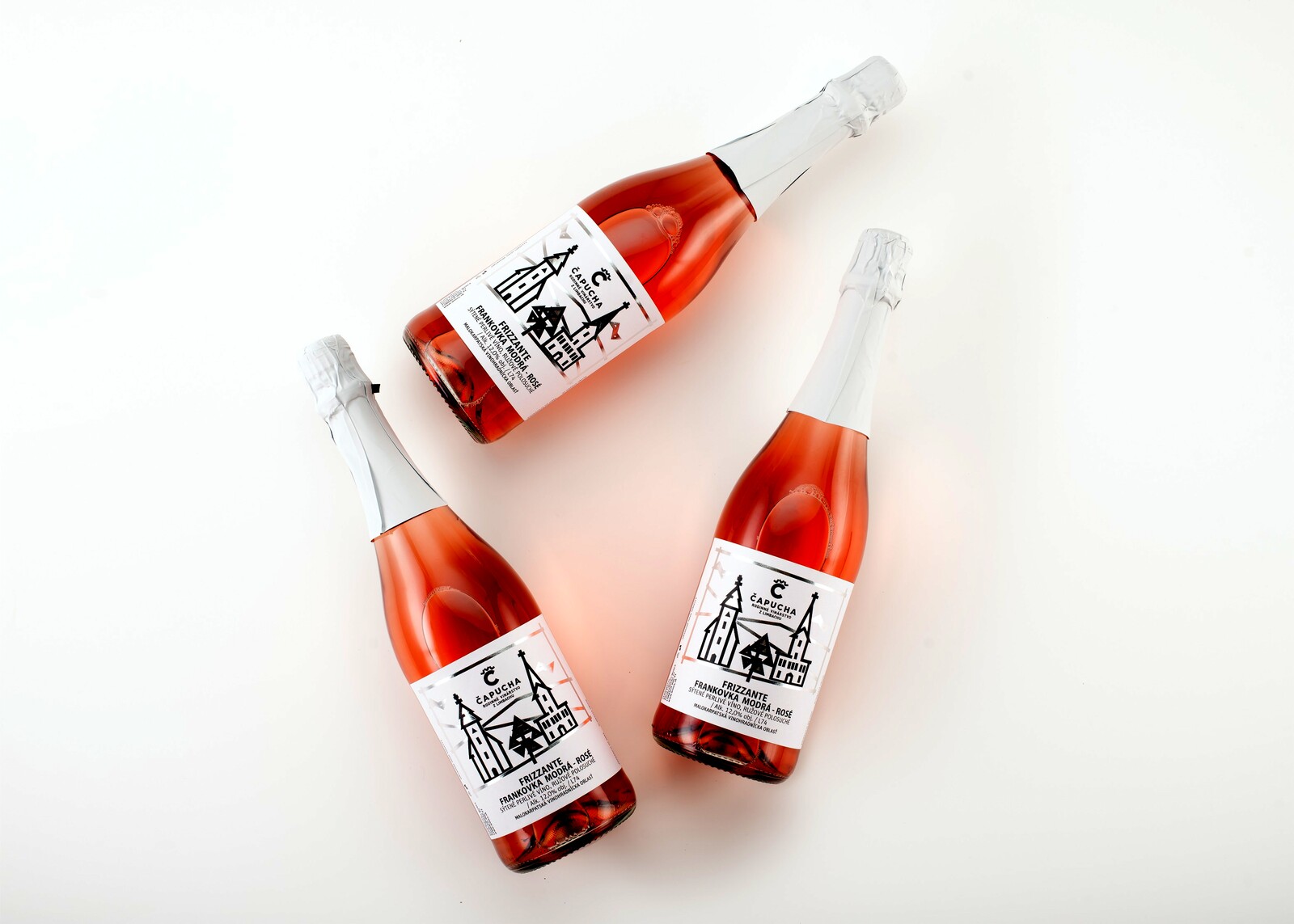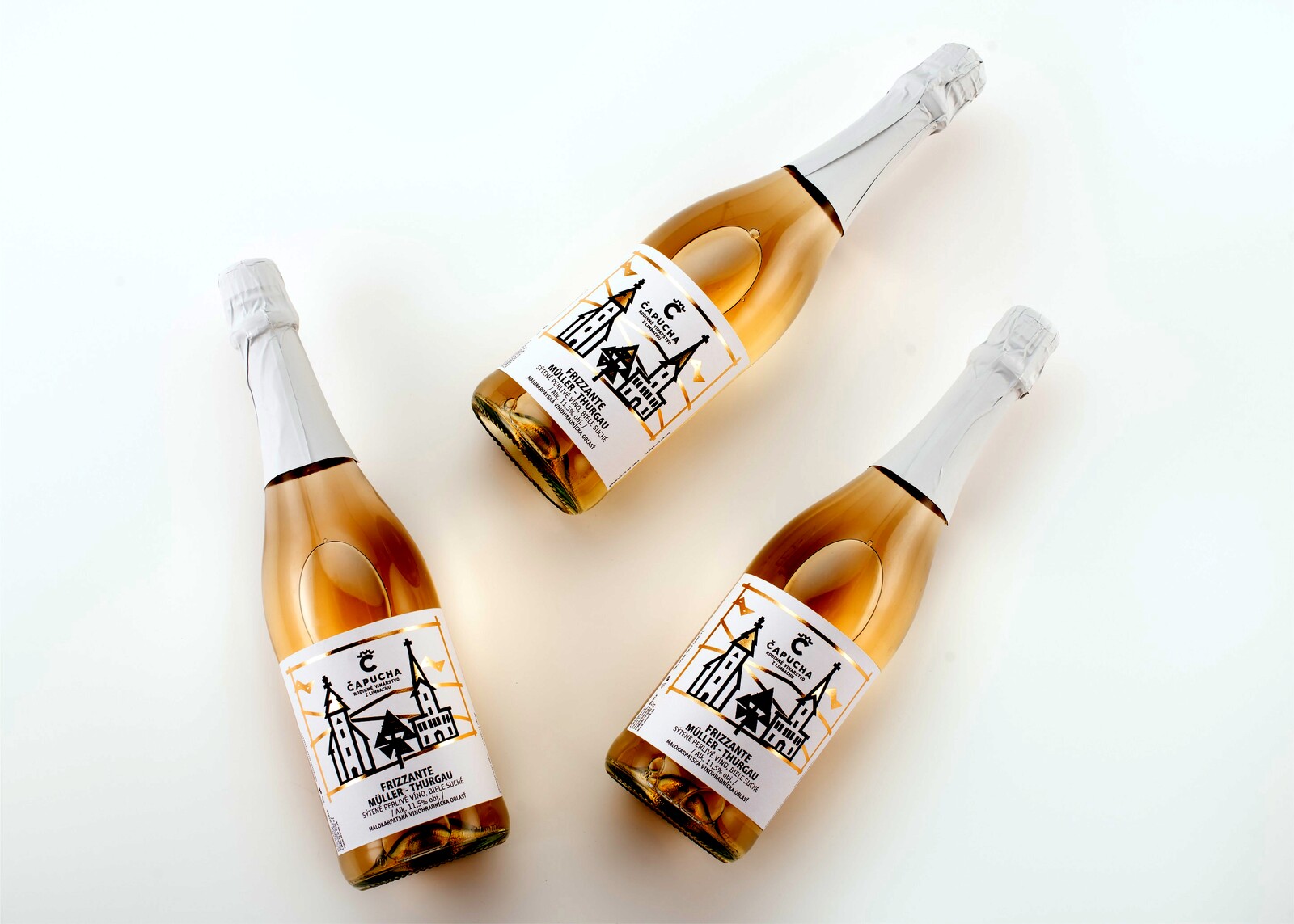 Koncepcia etikiet a obalov rady Frizzante pre vinárstvo ČAPUCHA