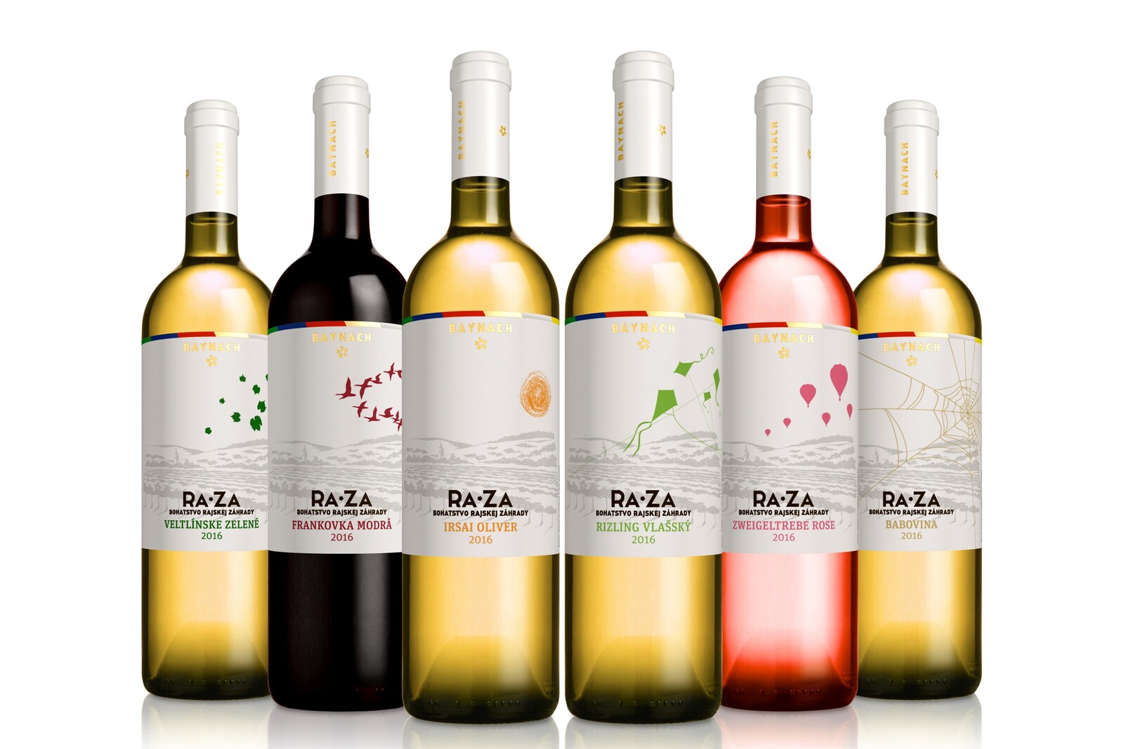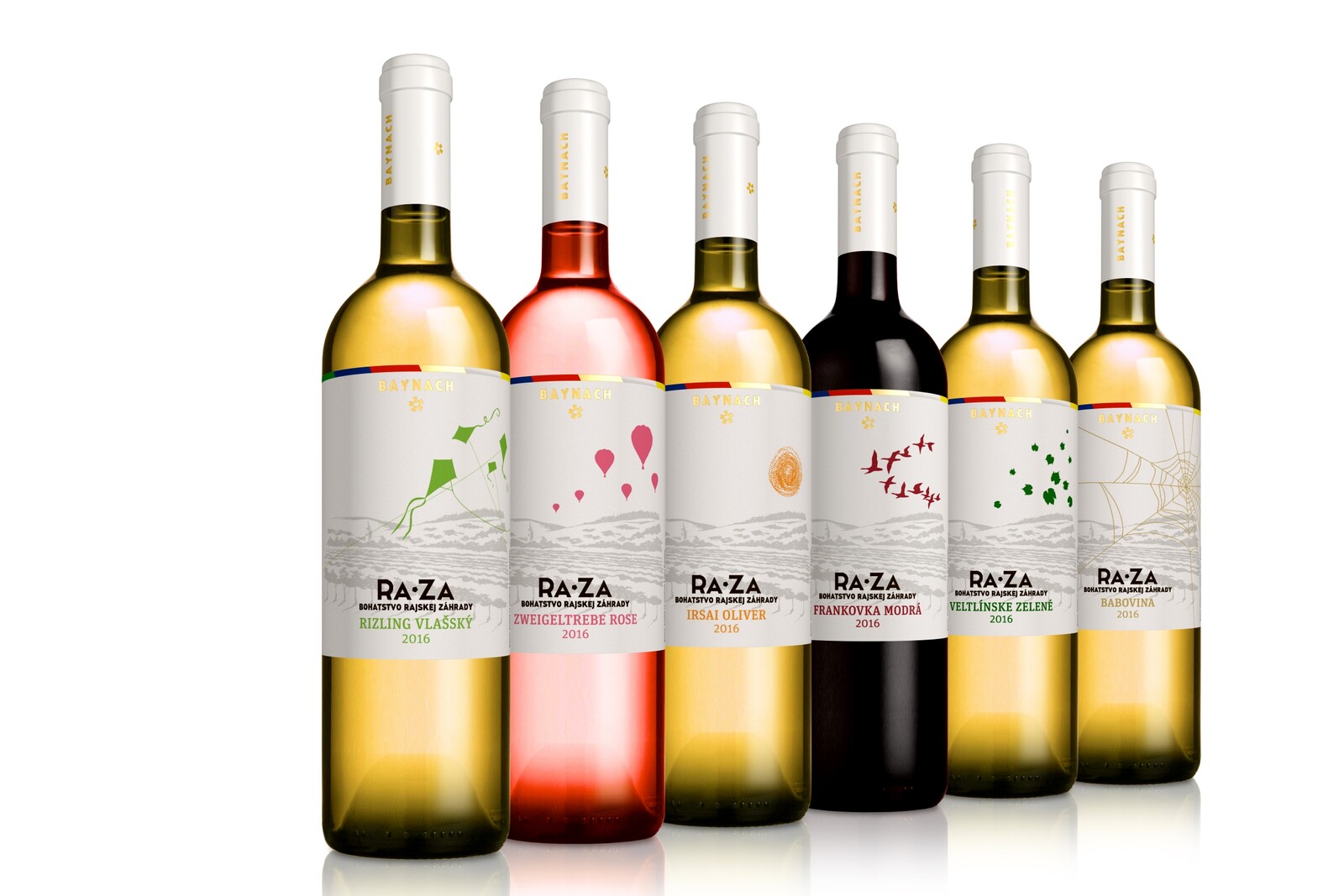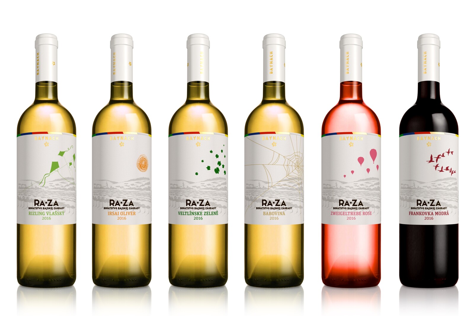 Návrh etikiet nižšej rady vín - kolekcia RA*ZA pre vinárstvo a vinohradníctvo BAYNACH.